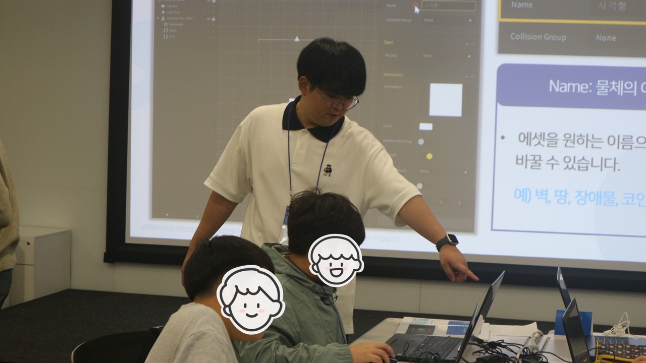 하반기 수업은 3시간씩 총 8번 진행되는데요. 교육 과정에서 아이들은 직접 게임을 기획하고 제작하는 과정을 차근차근 경험하게 됩니다. 처음엔 낯설고 어렵게 느껴질 수도 있지만, 집중하며 반짝이는 눈빛을 보이는 아이들과 열정 가득한 서포터즈들을 보니 앞으로의 시간이 정말 기대되었습니다.