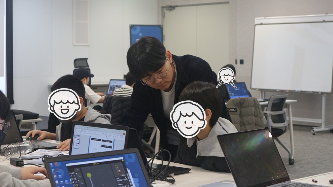 수업의 마무리 즈음, 각 팀의 화면에는 서로 다른 개성과 색깔을 가진 ‘나만의 게임’이 완성되어 있었고 아이들은 완성된 결과물을 확인하며 뿌듯한 표정을 지었습니다. 아이들의 상상력과 협력이 만든 이 작은 게임들이 해커톤 무대에서 어떤 모습을 보여줄지 벌써 기대됩니다.